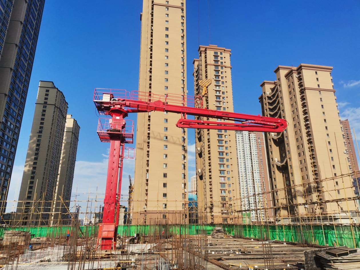 廊坊凱博建設機械科技有限公司生產的?JAINE建研?HGY32和HGY24電梯井爬升式布料機成功在沈陽旭輝鉑悅·公望項目中順利安裝并投入使用。